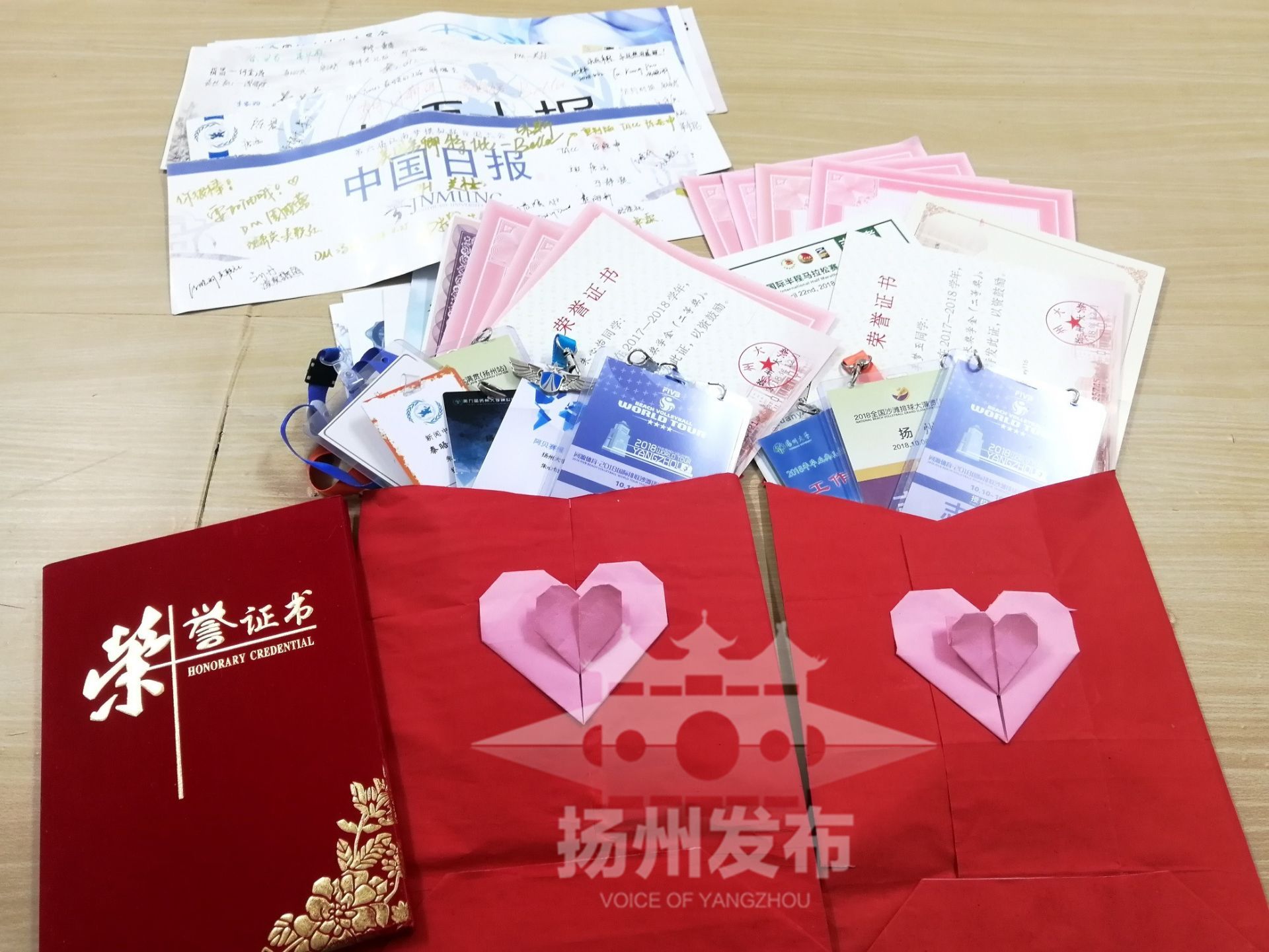 压岁包里面装着她们大学以来获得的各类证书和奖状:从“扬州鉴真半程马拉松比赛”、“国际沙滩排球比赛”等重大赛事的志愿者证,到“模拟联合国协会”、校新闻社等社团组织的表彰,再到英语四六级、BEC等专业等级证书。这些都是她们在大学里一步步成长起来的印记,承载着她们的付出与努力。当谈及制作红包的初衷,李梦玉说道:“往年都由长辈给我们发红包,这一次,我们也想借红包的形式,把这一年来课堂内外的收获分享给他们。”