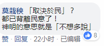 不过也有人解释称,蔡当局已背离民意了,神明的意思就是“不想多说”。