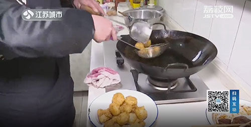李承仁说:“以前藕圆子和现在比是不一样的。现在调料多了,还有芝麻和鸡蛋,生活条件不一样了,以前藕圆子很普通就只是用油做。”