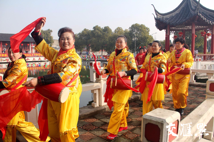 活动现场,演员们身着节日盛装,精神饱满,喜气洋洋,踏着欢快的音乐节奏,以特有的民俗表演方式向人们拜年、喜闹新春。翻飞的彩扇、挥舞的彩绸让人眼花缭乱、目不暇接,舞出了人民群众红红火火的幸福生活;翻腾的蛟龙闪转腾挪,展现出了十万曲塘人民以“全国重点镇建设创特色、全省经济发达镇改革走在前、全市区镇考核夺红旗、高质量发展增贡献”为目标定位,积极建设美好曲塘的精神风貌。踩高跷、打花鼓、舞龙、舞狮、河蚌舞等等,各种艺术形式依次展演,让观众充分领略到了江苏省特色文化之乡的独特魅力。一时间,大街小巷锣鼓喧天,祥龙飞舞,热闹非凡,为节日的古镇增添了喜庆热烈的气氛。