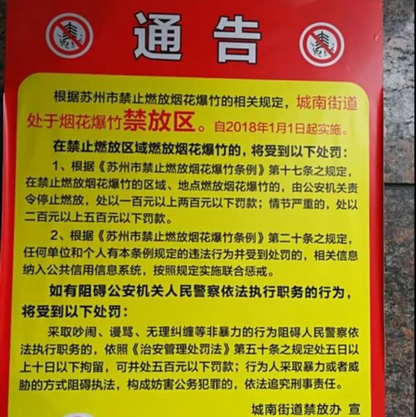 吴中辖区内各重点禁放区警力全部集结,对禁放区进行全方位管控,对违规燃放烟花爆竹的行为进行处罚。