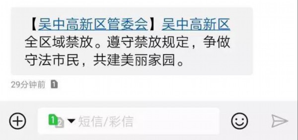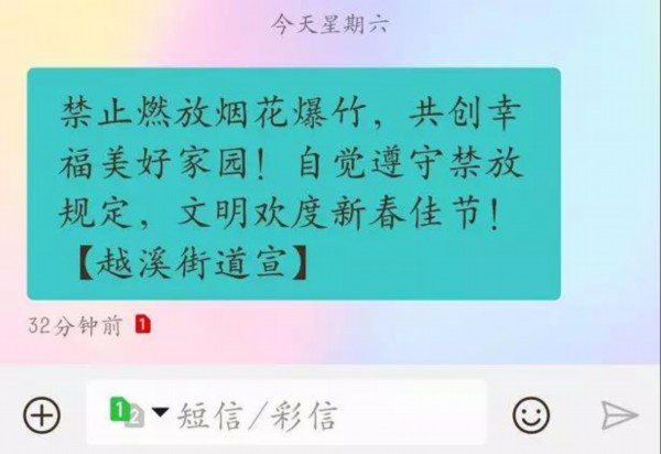 群发短信,呼吁市民遵守禁燃禁放规定。