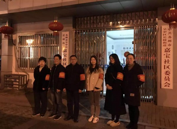 吴中高新区机关工作人员、社区工作人员、社区楼道长、保安等志愿者在辖区巡逻。