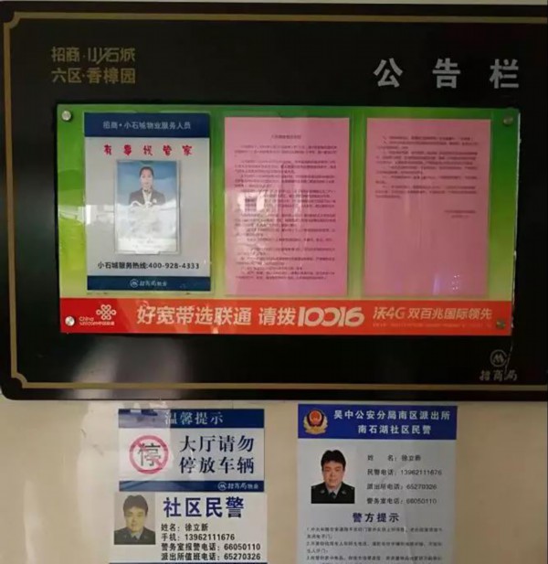 小区楼道和公告栏内,张贴禁燃禁放通告和社区民警联系方式。