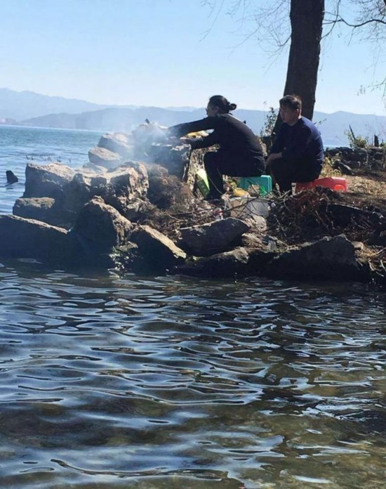 “洱海洗车”一事尚未尘埃落定,2月8日下午,又有网友反映有人在洱海边烧烤。