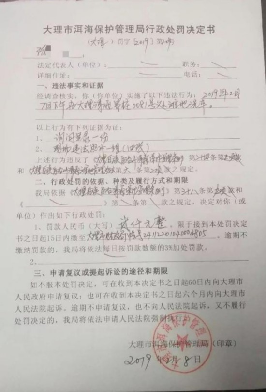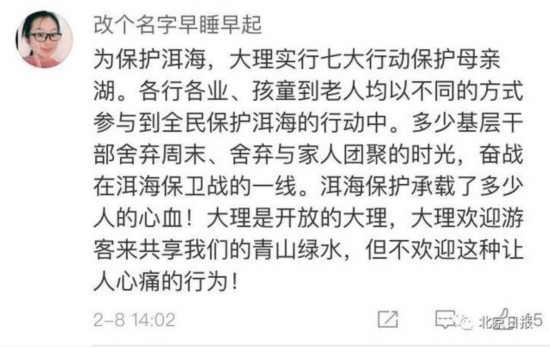 8日早上八点左右,发现微博网友反映后,大理市洱海保护管理局和大理市公安局洱海派出所及时地介入调查,核实车辆和车主的信息。