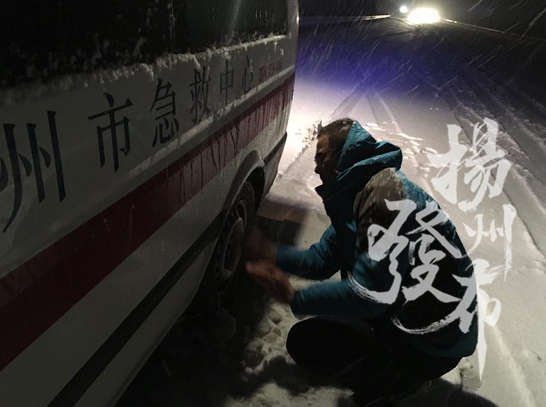 雪越来越大,路途中多次由于积雪太厚导致车辆无法开动,钱永只能用携带的工具一次次清理车轮附近的积雪,一次次重新启动车辆艰难前行。最终,于今天早上7时30分,救护车平安把孕妇送至了上海同仁医院,较平时用时多出了近一倍。看到一路上如此艰辛,到达目的地后,家属流下了激动的泪水。