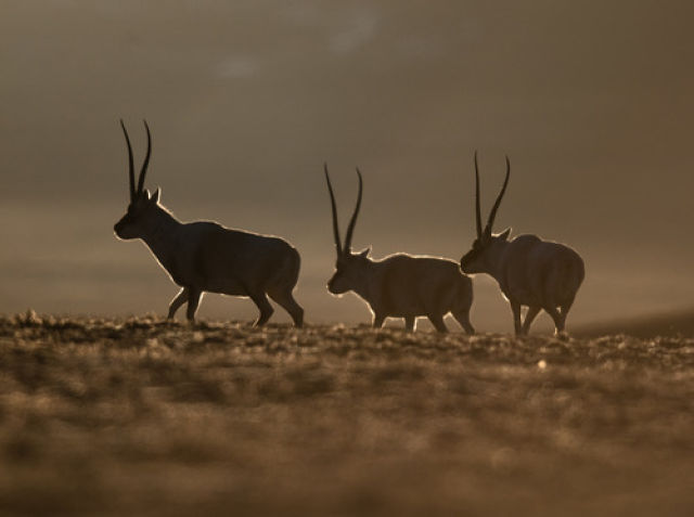 一群藏野驴在大风中觅草,偶尔抬头回望;藏羚羊膘肥体壮,呼啸奔跑;野牦牛静谧踱步,在远离公路的草甸上。