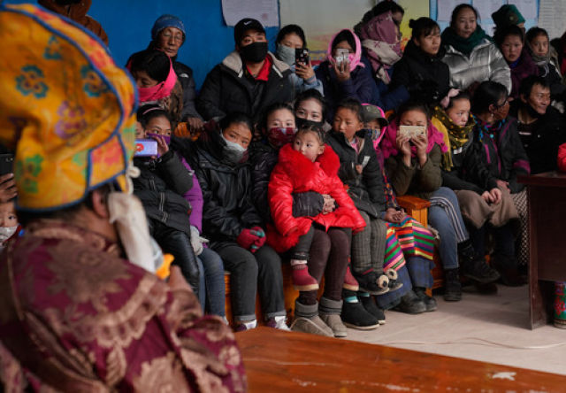 双湖县嘎措乡的牧民在观看节日期间文艺下乡活动的表演(1月31日摄)。新华社记者 普布扎西 摄