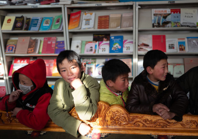 双湖县嘎措乡的牧民孩子在阅览室里(1月31日摄)。新华社记者 普布扎西 摄