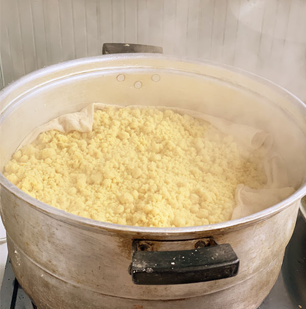 大锅里的蒸屉铺上抹布,糜子面稍加水放上去大火蒸。