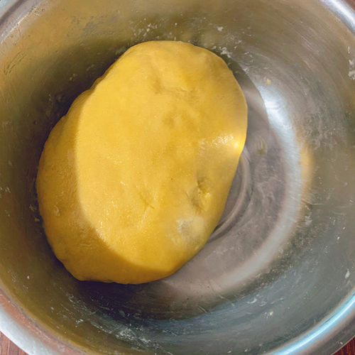 蒸好后迅速趁着热用手搅拌成面团,这一步需要多年家务经验的积淀,因为实在是太烫了。