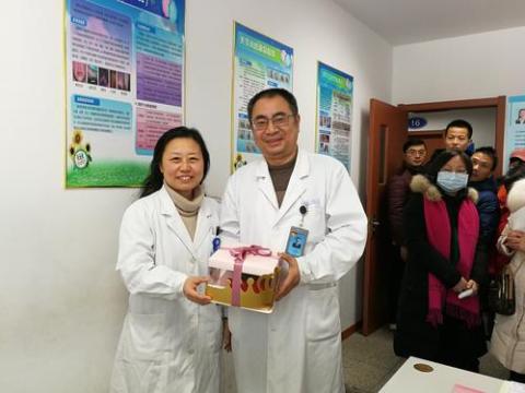 " 欣航,你看,工会给咱们送蛋糕来了!"2月8日,大年初四上午,南通大学附属医院门诊四楼风湿免疫科专家诊室里,朱欣航主任刚看完一位患者,一抬头看到自己的丈夫,针灸科的朱建军主任来到面前。记者了解到,当天是这两位医生的结婚25周年纪念日,他们的银婚在工作岗位上度过。