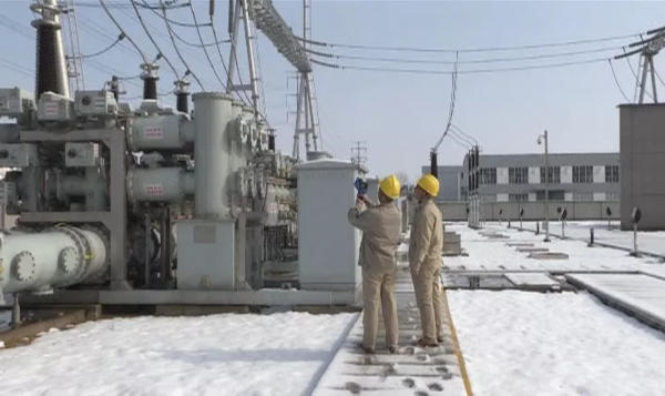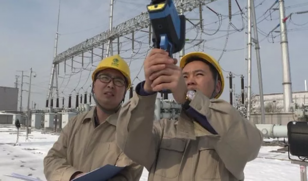 经过一夜大雪,国网铁云220KV变电站已是银装素裹,变电站的工人正在进行巡视,对重点部位进行测温检查并确保户外端子箱、机构箱加热器,交直流室等空调设备运行正常。