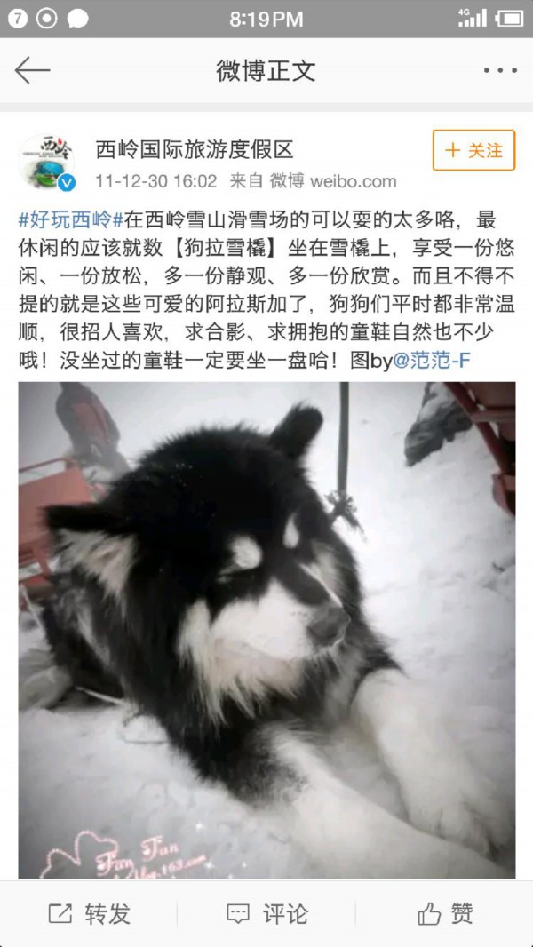 随即,这条信息在许多爱狗人士之间流传,大家呼吁坚决抵制这样的行为。2月9日中午,成都文化旅游发展股份有限公司西岭雪山运营分公司官方微博“西岭国际旅游度假区”发出公告,称已暂停“狗拉雪橇”项目运营。