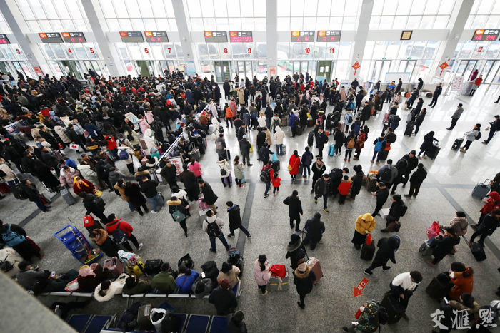 10日,旅客在连云港市赣榆汽车客运总站排队检票。当日是农历正月初六,民间有“三六九,往外走”的习俗,连云港市赣榆区长途客运站迎来节后返程客流高峰。