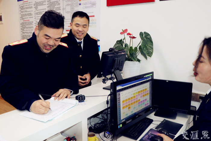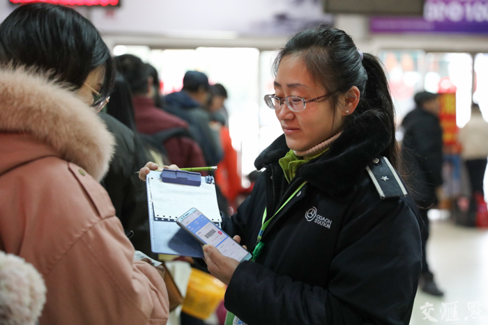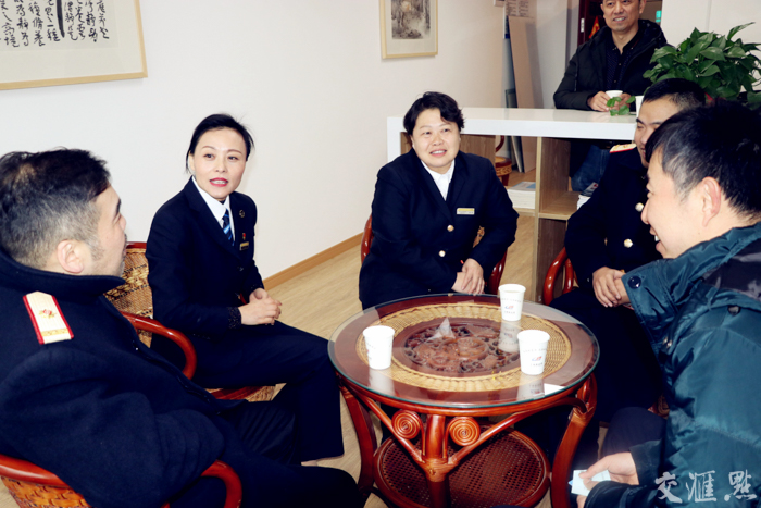吕艳内疚地说,她已经连续七年没有在家过春节,小组成员也一直严格践行班组的服务理念。图为“温馨驿站”工作人员与司乘人员交流。