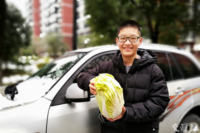 10日,镇江市民贾军松探望母亲准备返回无锡时,母亲让他把白菜带上。贾先生推辞后,母亲说,今年菜价便宜,老家一棵白菜只要一块钱,比无锡便宜三、四块。实在不忍心再推辞的贾先生只好带上,出发时还让儿子抱着白菜在车前留了个影。
