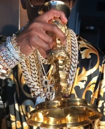 梅威瑟说:“这才是真正的皇室,我得到的每一样东西都是真实的,甚至我喝酒的杯子也是真正的金制的,你们得承认你们都爱这些,但是对我来说不过是一堆狗屎罢了”