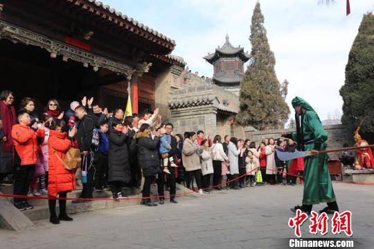 中新网太原2月12日电 (刘小红)记者11日从山西省介休市张壁古堡景区获悉,春节期间,该景区举办的第二届“地道中国年”活动,丰富多彩的年俗活动吸引了超10万中外游客。