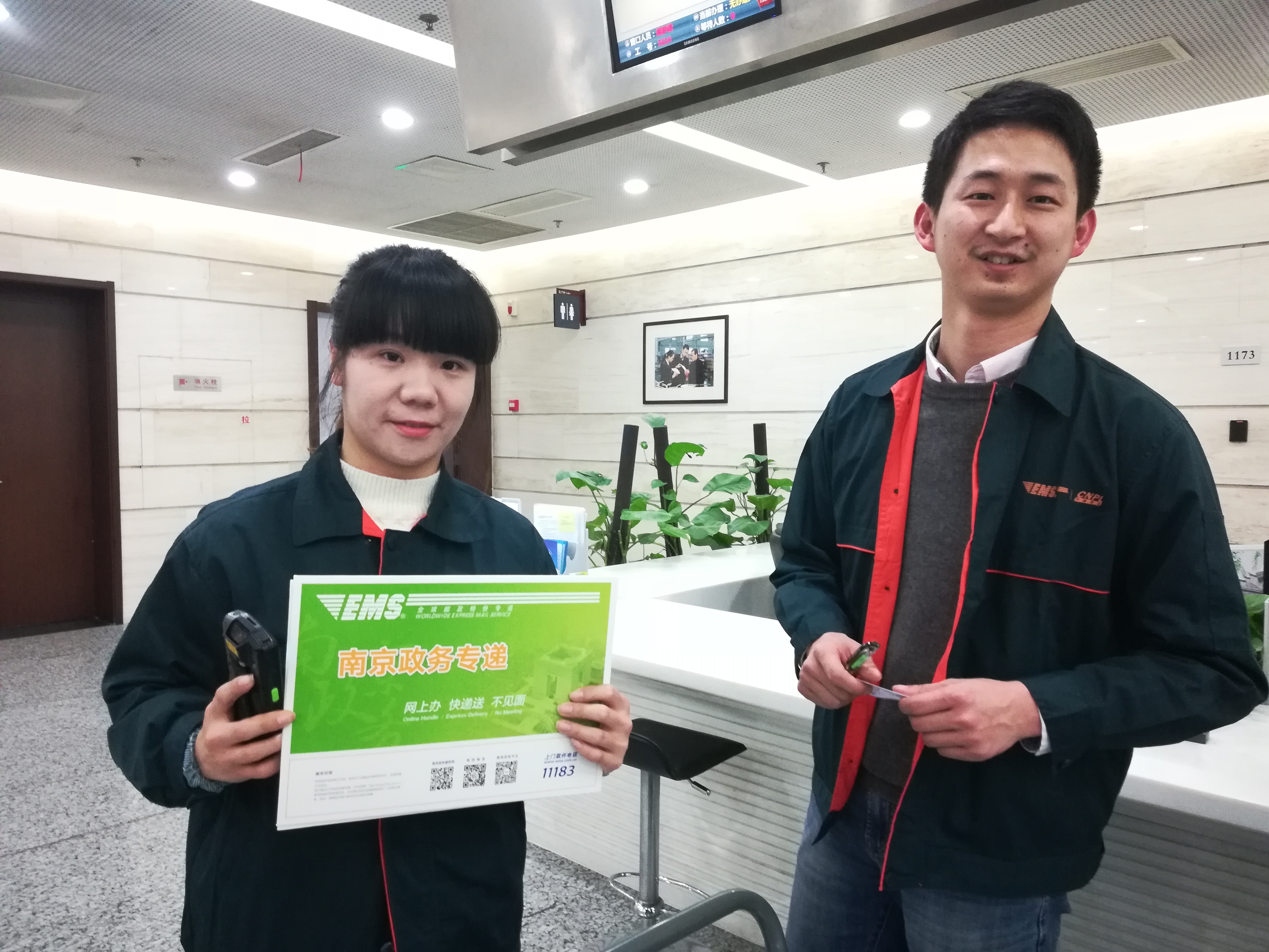 EMS驻中心工作人员李婷、周唐琪在揽件