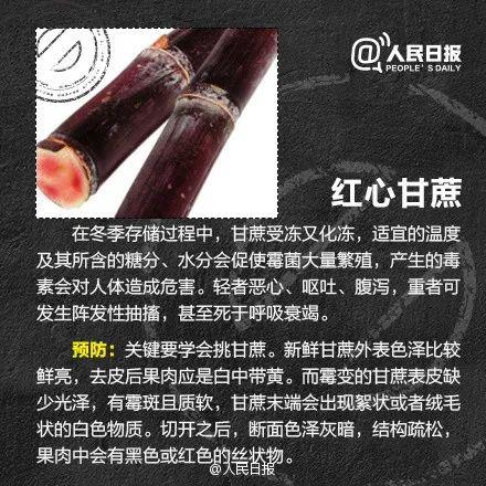 另外,尽量不要饮用街头无照商贩压榨的甘蔗汁,“黑芯”、 “红芯”的甘蔗更是不宜食用。
