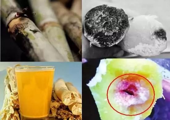 霉变的甘蔗表面带 “死色”,切开后断面呈红色或黄色,闻之有霉味,口味带酸或有酒糟味,绝对不能吃。医生提醒,一般霉变的甘蔗外观光泽差,用手按硬度差,没有弹性,尖端和断面有白色絮状或绒毛状霉菌菌丝体,组织结构疏松,气味难闻。