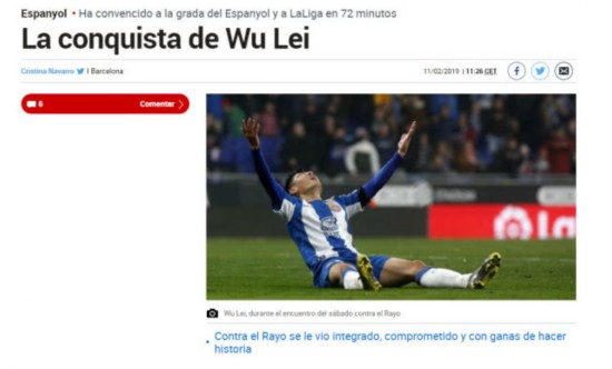 武磊在周六的比赛中替补登场改变了比赛的走势。他制造了一粒关键点球,帮助博尔哈-伊格莱西亚斯扳平比分。尽管他来到西班牙人仅仅2周,但他适应球队的速度即使连中国媒体都感到惊讶,因为时间真的太短了。他们还记得张呈栋的情况,仅仅在巴列卡诺对阵马竞的比赛中上场了9分钟。