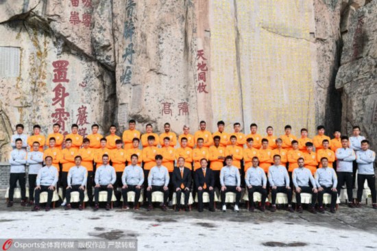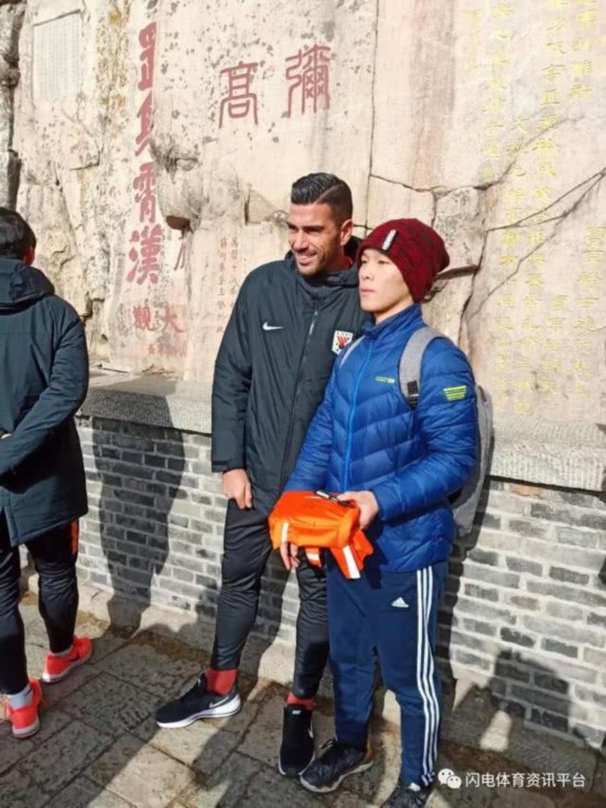 由于天气还冷,泰山山顶尚有一些积雪,路面湿滑。鲁能全队先是乘坐索道抵达南天门,随后步行来到山顶。其中,吴兴涵、崔鹏、郑铮、戴琳、周海滨、齐天羽、韩镕泽、曹盛、段刘愚、李冠希、刘彬彬、郭田雨、张弛、陈哲超、陈科睿、刘震理、宋龙、刘洋、王彤、罗安东、蒿俊闵、王大雷、佩莱、刘军帅、德尔加多、德格斯、刘超阳等球员自然是悉数亮相泰山。