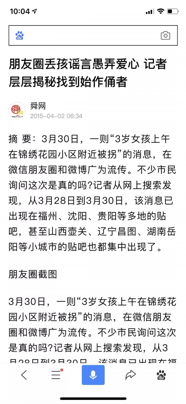 据核查,这一信息早在2015年3月就曾在网上出现过,也有类似的被绑架、被拐卖的信息被警方辟谣为虚假信息。