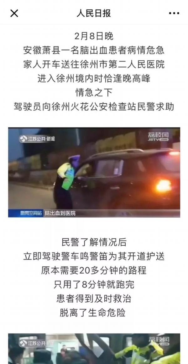 总台得知情况后立即为警车和病人车辆开辟了绿色通道,平时需要20多分钟的路程,仅用了8分钟左右就赶到了徐医附院。