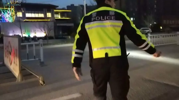 2月8日,大年初四,傍晚时分交警支队治安卡口大队火花检查站民警郭志华与辅警杨震、朱静稳正在路面执勤。