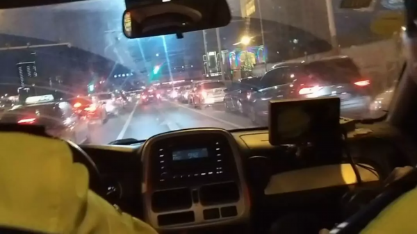 送医途中,正值晚高峰,道路十分拥堵。郭志华向总台汇报紧急救助情况,同时一路不断鸣笛示警。