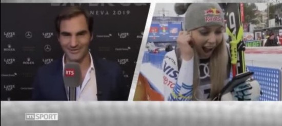 腾讯体育讯 日前,高尔夫选手伍兹前女友,美国高山滑雪名将林赛-沃恩在退役战——世锦赛女子速降比赛中摘得铜牌,圆满结束职业生涯。在比赛后,她收到了来自自己偶像瑞士天王费德勒的视频连线祝福。收到这一惊喜的沃恩现场尖叫,并大喊费德勒的名字。听完费德勒对自己的祝福后,沃恩还对着镜头说:“罗杰,我爱你!”