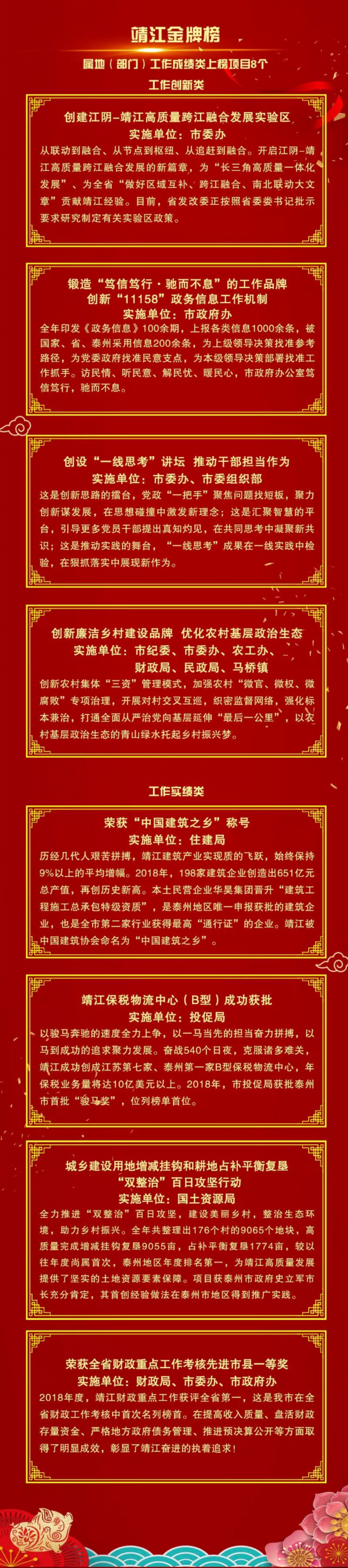 树最高标准。我们要把每一个梦想化成可追可行的赶超目标。广大企业家要更加自立自强,勇当行业冠军、产业领军。所有党员干部要更加自信自觉,创造更多全国第一、靖江新路。做最优品牌。凡是打好基础的,都要扬其所长、创造特色;凡是靖江首创的,都要持续精进、完善提高;凡是行业独有的,都要专注品质、提升价值。努力用品牌亮色丰富城市底色。创最佳业绩。坚持小事做精致、大事做圆满、难事做稳妥,在岗位实践中体现价值,在点滴提升中成就事业,在自我超越中树立人生标杆。