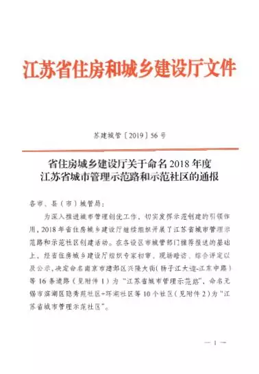 省住建厅命名表彰了一批江苏省城市管理示范路和示范社区,