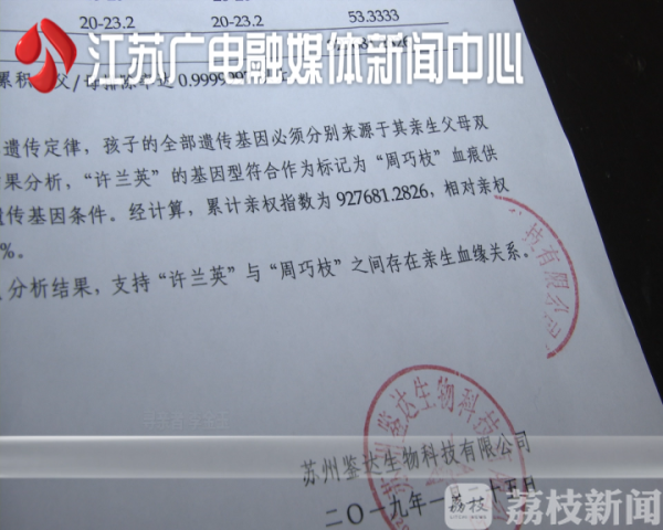 江阴寻亲志愿者协会志愿者王砚萍说:“年前鉴定中心放假的前一天,把鉴定做出来了,鉴定出来以后,很高兴,大喜,比对成功。”许兰英是老母亲,周巧枝就是李金玉 。
