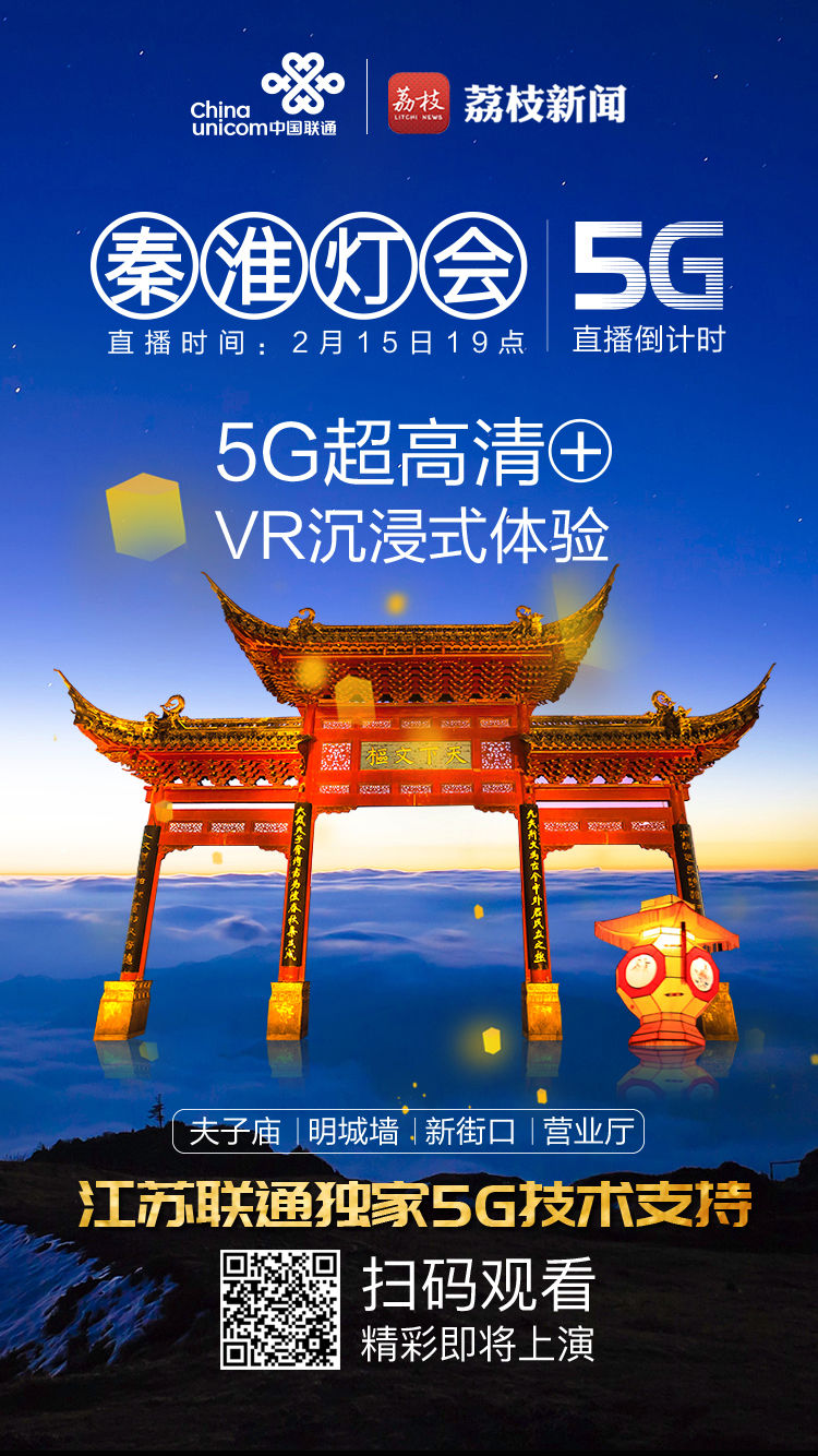 有木有开始期待起这场集科技感与体验感于一体的直播?5G、VR、全国之冠的秦淮灯会,2月15日19:00,相约荔枝新闻,我们不见不散哦~