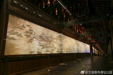 位于大报恩寺遗址景区月台遗址区“一带一路“主题灯组,选取两城特色地标大报恩塔、大雁塔、城墙等元素,遥相呼应相映成趣,背景映衬着两城美丽的城市天际线,跨越时空古今交融,飘舞的丝带犹如两条丝绸之路连接着两座城市,娓娓道来千百年来动人的古城故事。