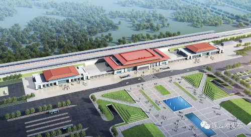 灌云站位于灌云县城东部城区,西临204国道,东邻连镇铁路,总建筑面积14233平方米,包含站房面积6000平方米、信号楼面积1033平方米、雨棚面积7200平方米。