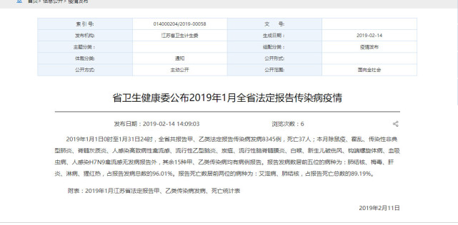 2019年1月1日0时至1月31日24时,全省共报告甲、乙类法定报告传染病发病8345例,死亡37人;本月除鼠疫、霍乱、传染性非典型肺炎、脊髓灰质炎、人感染高致病性禽流感、流行性乙型脑炎、炭疽、流行性脑脊髓膜炎、白喉、新生儿破伤风、钩端螺旋体病、血吸虫病、人感染H7N9禽流感无发病报告外,其余15种甲、乙类传染病均有病例报告。报告发病数居前五位的病种为:肺结核、梅毒、肝炎、淋病、猩红热,占报告发病总数的96.01%。报告死亡数居前两位的病种为:艾滋病、肺结核,占报告死亡总数的89.19%。