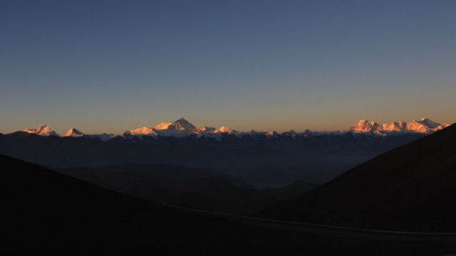 图为四座海拔在8000米以上的高峰:马卡鲁峰、洛子峰、珠穆朗玛峰、卓奥友峰(从左至右),四座山峰均位于珠峰保护区内 新华社记者刘宇摄于2008年4月19日