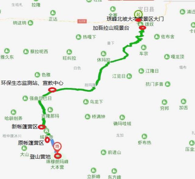 新旧游客大本营(帐篷营地)与登山大本营的位置对比图,新游客大本营处于保护区实验区范围内,与登山大本营之间存在一定距离。景区大门位于定日县城西南方向。 定日县旅发委供图