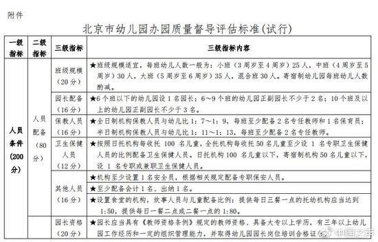 为了加强对幼儿园的监督监管,提升幼儿园的办园水平和保教质量,本月15日,北京市对外正式公布《北京市幼儿园办园质量督导评估办法(试行)》,明确将对全市幼儿园进行打分定级,评估结果将直接影响幼儿园的生均补贴、表彰奖励、干部考核等。同时发布的质量督导评估标准,对幼儿园的人员条件、空间设施、机构管理等方面也都做出了明确规定。