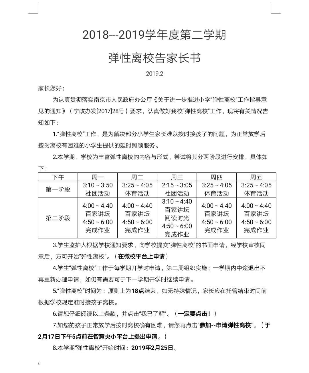 假期里,江苏省教育厅、省体育局、省科学技术协会曾联合下发《关于利用优质体育与科技教育资源开展中小学生课后服务试点工作的通知》,决定在南京市选择部分区域,开展体育、科技资源走进中小学课后服务的试点。今天(2月17日),省内一些学校的孩子们在返校报到时发现,自家的“课后服务”,也就是俗称的“弹性离校”升级变脸了。