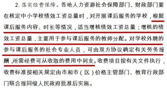 根据《实施意见》,将依据课后服务内容、时长等情况,适当增核绩效工资总量;增核的绩效工资总量,主要用于参与课后服务的教师分配。