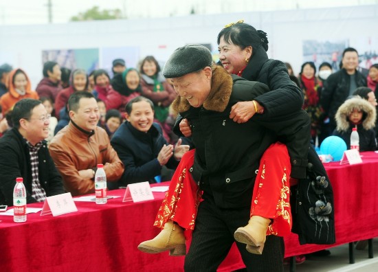 老公背着老婆跑、婆婆比划儿媳猜……昨天,一场特殊的闹元宵活动,在蜀冈-瘦西湖风景名胜区平山乡槐子村举行。元宵节也被称作中国情人节,当天,平山乡举办首届乡村爱情文化节,来自平山乡6个社区(村)的居民,欢聚槐子村文化广场,通过互动游戏,演绎夫妻情、婆媳情、亲子情,“乡村爱情节”主打的“好丈夫背媳妇”比赛,更是引得现场观众一阵阵高呼。