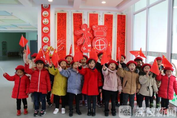 2月18日开学第一天,盐城市潘黄实验学校操场上鲜艳的国旗迎风飘扬,少先队员的红领巾与孩子们手中的国旗、气球交相呼应,师生同唱《我和我的祖国》成了新学期开学典礼上最亮丽的风景。