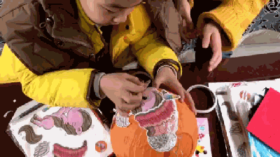 赵静负责把灯笼骨架扎起来,马天宇则在灯笼上贴上卡通画,两人分工明确。
