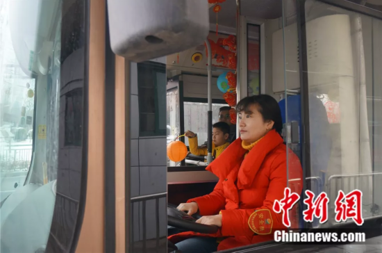 作为公交车长的赵静,工作十分忙碌。 韩章云 摄